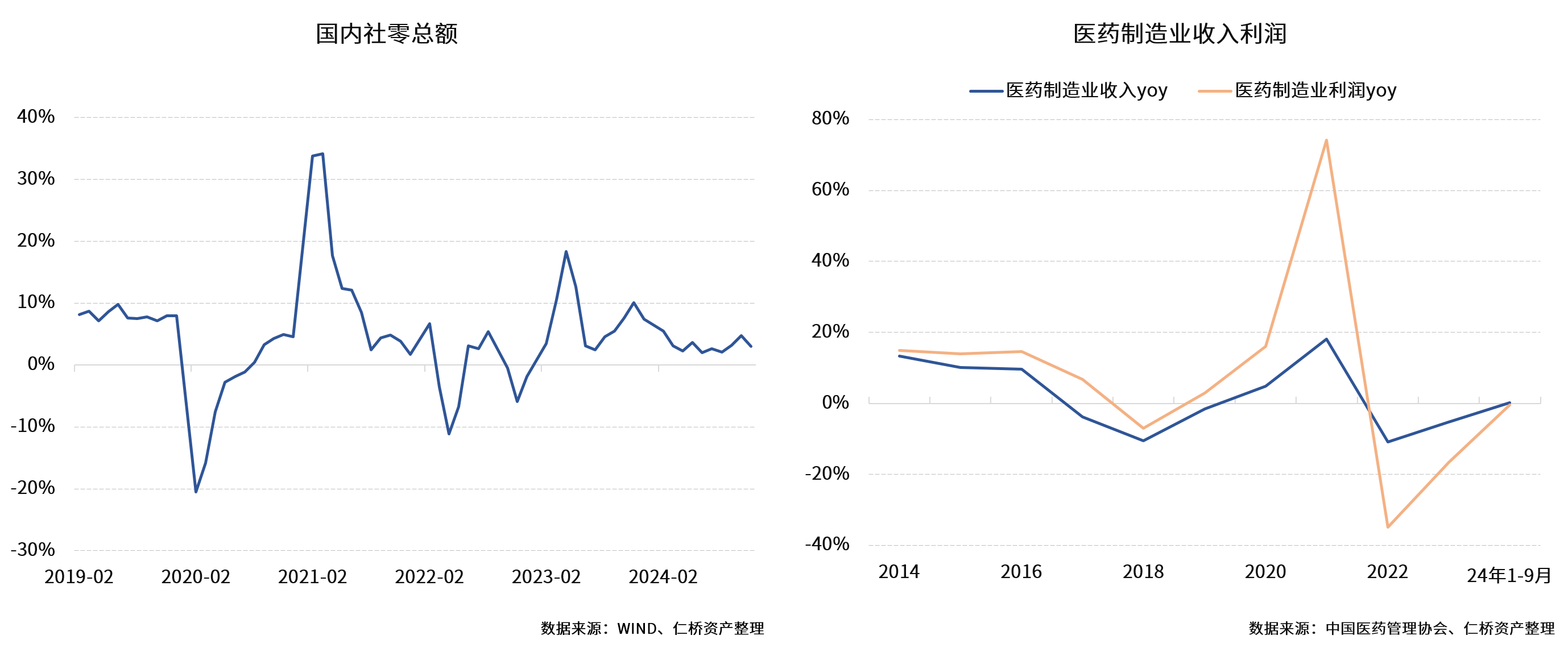 从宏观经济的三驾马车来推演,消费应该是2025年政策最确定也是最重要的发力点。一方面,投资有继续下行的压力。基建投资的订单和收入峰值我们很可能已经见到了,尽管总量数据上还看不到,房地产投资仍会在底部徘徊,制造业投资压力则来自于企业出海速度的加快,未来也会慢慢显现;另一方面,出口也将面临美国政策的巨大不确定性,我们只能根据对手变化,见招拆招了。因此,刺激内需应该是我们稳经济的最重要手段,是中长期政策的必然选择,而2024年内需各行业的低基数也确实给我们的政策实施留出了空间。